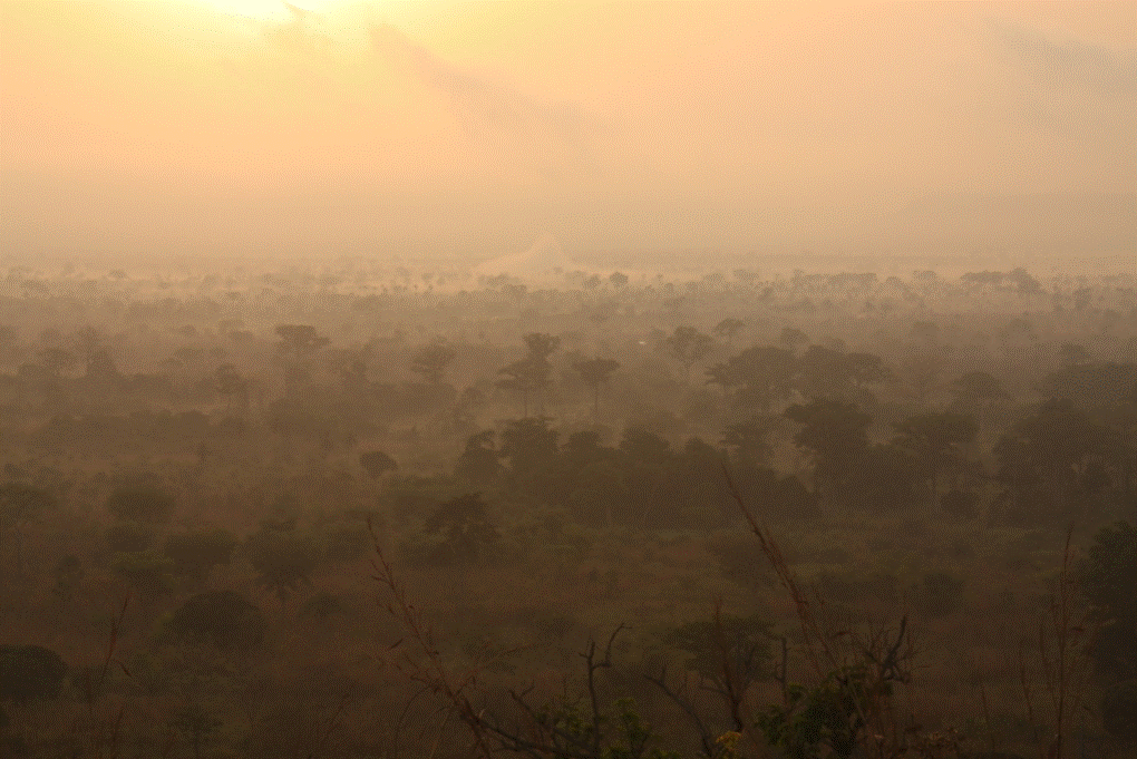 A refreshed squad re-convened early on Monday 14th, and headed inland and north-east into the Volta Region, bordering Togo, and home to Ghana’s highest peak and a scattered ridge of hills along its length northwards. The “hot-spot” map indicated the possibility of suitable habitats here, but aside from this, Volta Region had not previously been explored by the team. Arriving late afternoon we found ourselves a place to camp in the grounds of a mountain lodge, pitching our tents in the ample shade of mature mango trees. A view from the hilltop overlooked some good looking forest habitat for our first forays the next morning.
