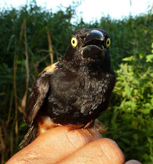 Not having seen any wood warblers yet, we’re not too hopeful of any success with our mp3 playback, as we had in Burkina. And we were right - not a sign! However 19 birds caught, including retraps of a little greenbul, green hylia, and a brown-chested alethe. New birds were 7 little greenbuls (mostly juveniles), 2 olive-green sunbirds, 2 white-tailed alethes, and singles of red-bellied paradise flycatcher, Sharpe’s apalis, collared sunbird, another brown-chested alethe, and a red-tailed greenbul – though this was the green-tailed race!